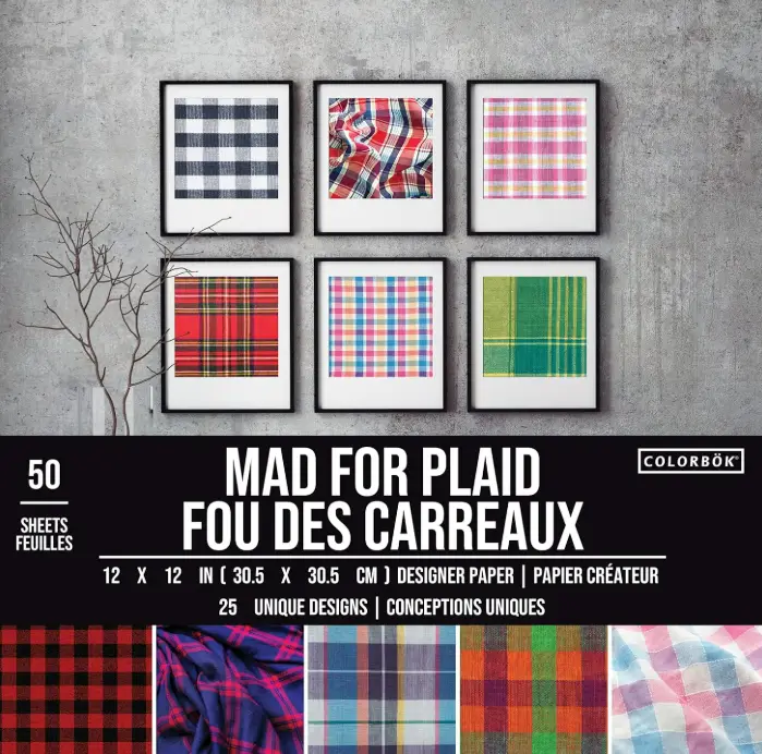 Colorbok Patterned Cardstock Paper 12×12, 50 Sheets of Square Scrapbook Paper for Crafts and Card Making, Single Sided, Bulk Pack with 25 Unique Designs, Mad for Plaid