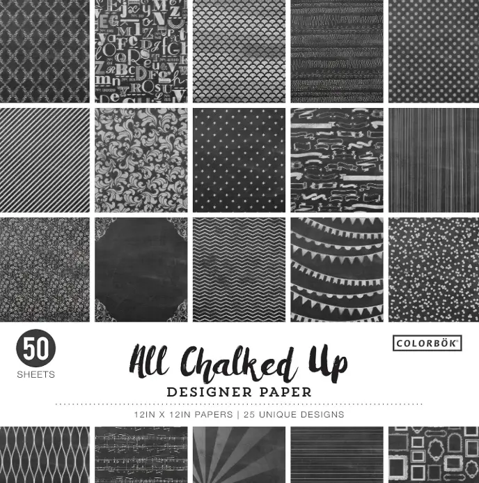 Colorbok Patterned Cardstock Paper 12×12, 50 Sheets of Chalkboard Scrapbook Paper for Crafts and Card Making, Single Sided, Bulk Pack with 25 Unique Designs, All Chalked Up