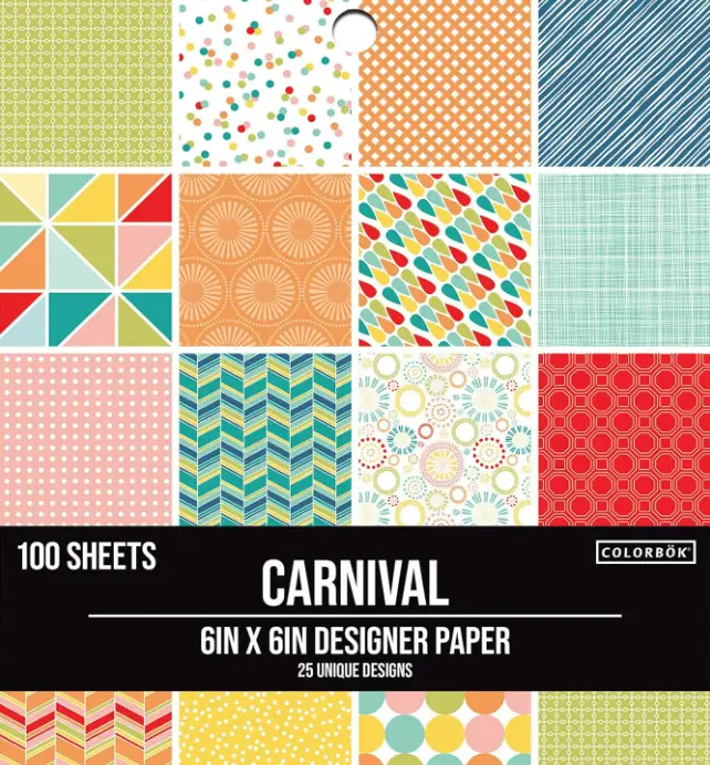 Colorbok Patterned Cardstock Paper 6×6, 100 Sheets of Square Scrapbook Paper for Crafts and Card Making, Single Sided, Bulk Pack with 25 Unique Designs, Carnival